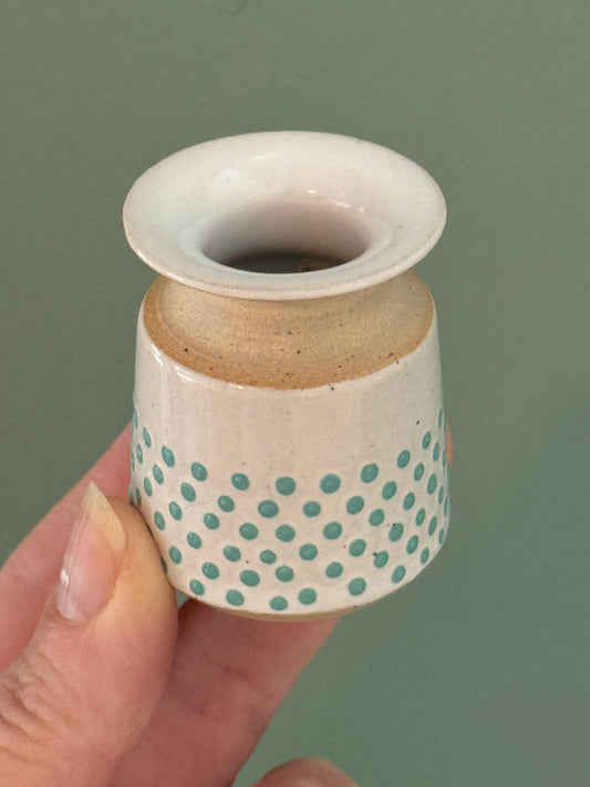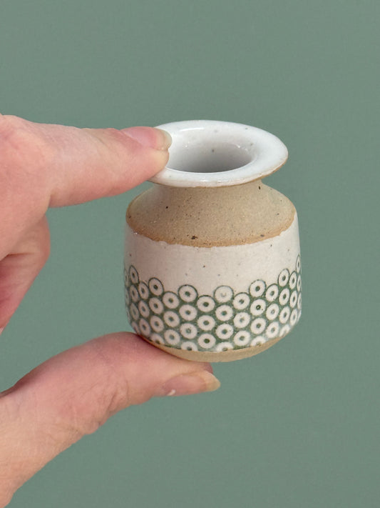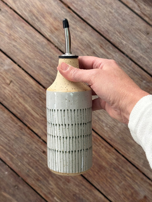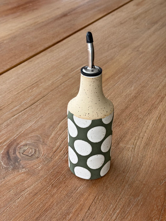 Oil bottle, green/ white dots