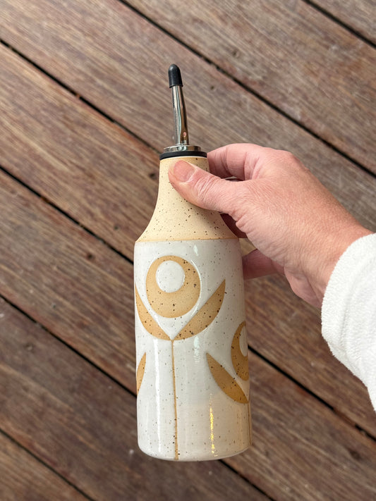 Oil bottle, exposed flower