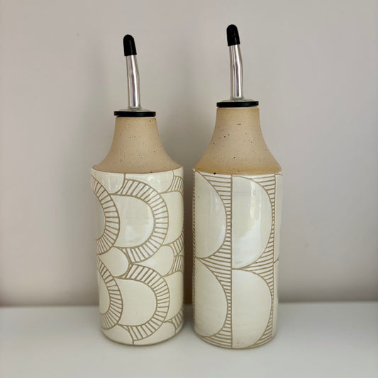 These beautifully designed oil bottles are the perfect blend of style and practicality. Ideal for olive oil or vinegar, they bring a refined look to your cooking space. Many customers say their olive oil even tastes better when poured from these bottles—a touch of elegance that enhances every meal, and every counter top.